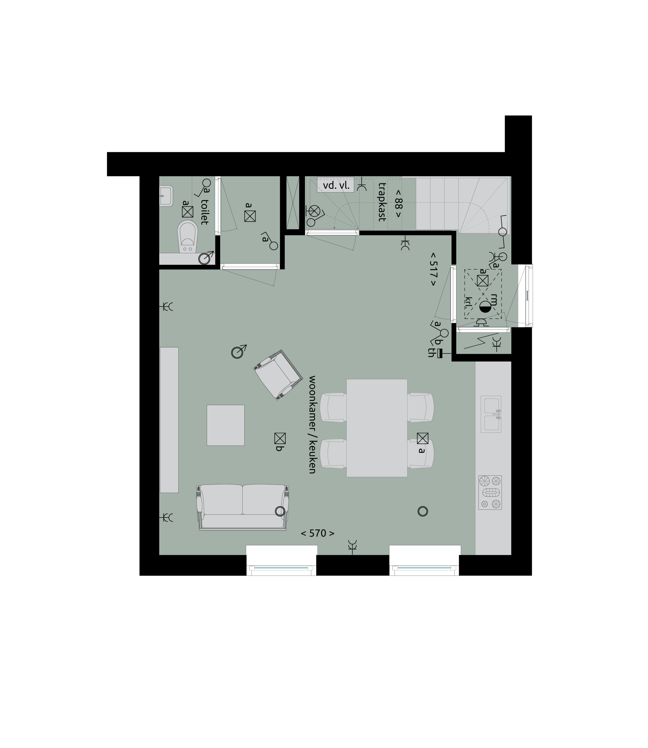 De stoere stadswoningen bieden je alle gemak die je kunt wensen. Een lichte woonkamer, open keuken, moderne badkamer en twee slaapkamers. Maar de kers op de taart is jouw eigen dakterras, waar je optimaal geniet van iedere zonnige dag.